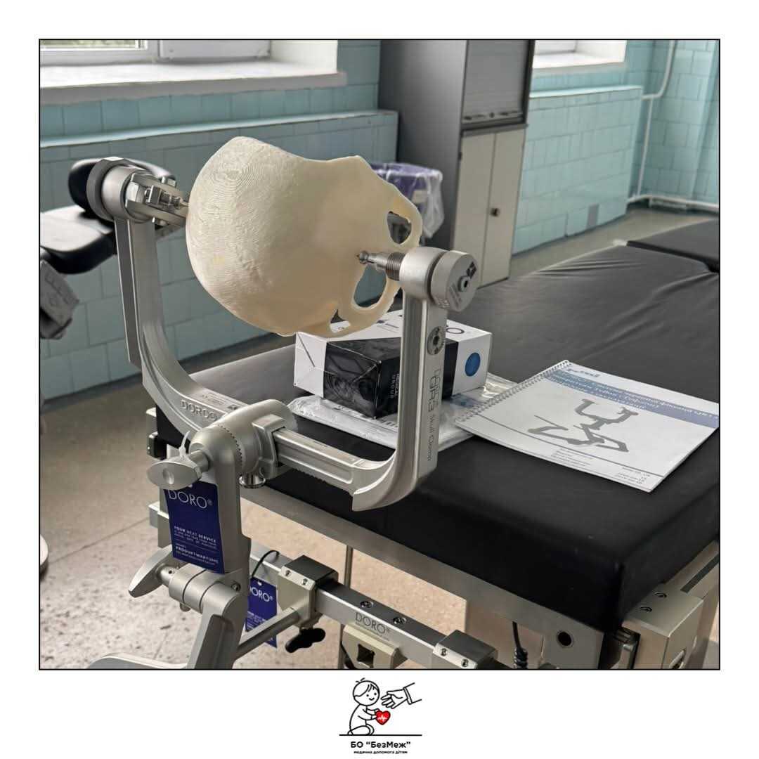 Це система черепної фіксації DORO QR3 - пристрій, який дозволяє надійно фіксувати голову пацієнта у стабільному положенні, що вкрай важливо під час таких оперативних втручань.